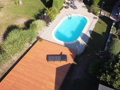 Die verschiebbare Terrasse POOLDECK von Alukov ist eine elegante und praktische Lösung, die Ihren Pool sicher abdeckt und die nutzbare Gartenfläche erweitert. Die begehbare Oberfläche trägt Gartenmöbel und schützt vor Witterungseinflüssen sowie versehentlichem Hineinfallen in den Pool.